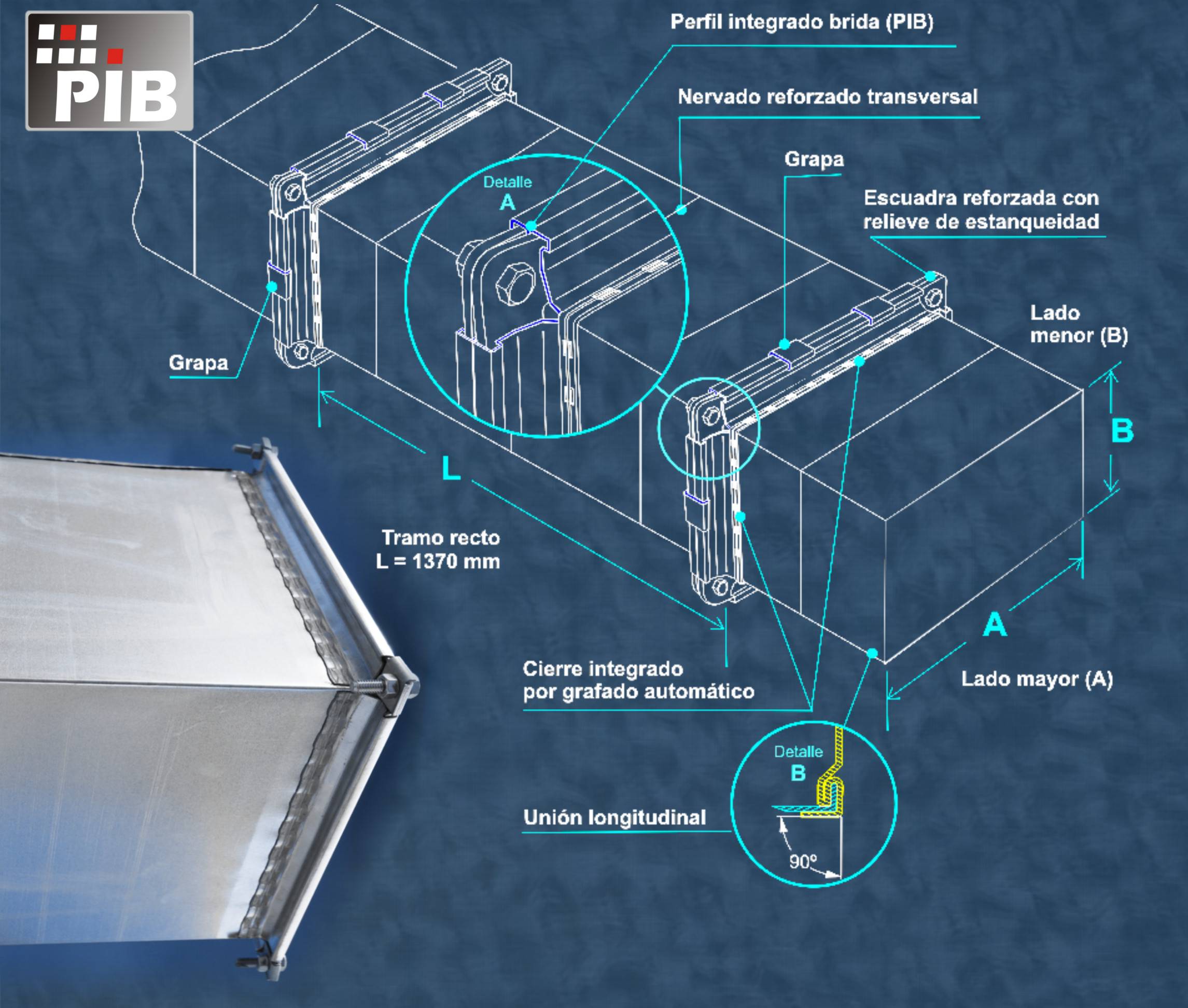NOTA: La altura máxima de la sección para conductos premontados es de 500 mm. otras dimensiones consultar. Espesores desde 0.6, 0.8 y 1 mm